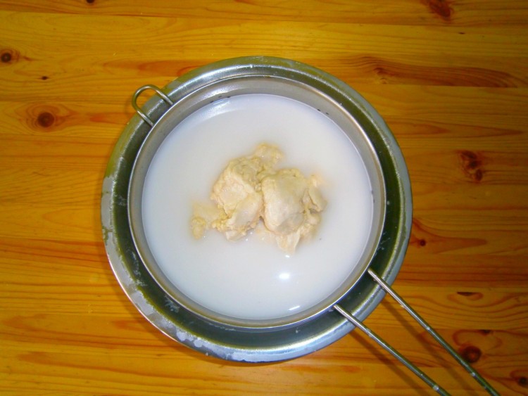 Cesto postupne zmenšuje svoj objem, žltne a začína nadobúdať hubovitú konzistenciu (s trochou fantázie pripomínajúcej mozog). V tejto fáze ho treba tlačiť veľa k sebe, pretože sa rozpadá. Vodu vymieňame tak dlho, kým nezostáva takmer čistá – z mojej skúsenosti zhruba tak päťkrát.
